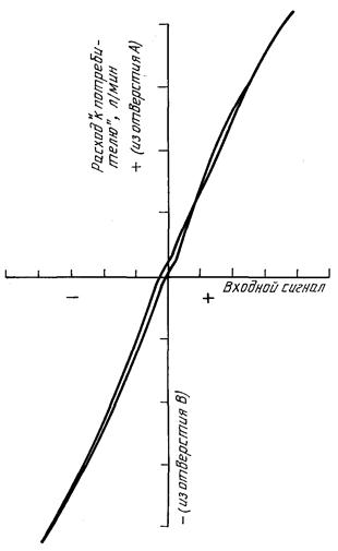 Зависимость перепада давлений нагрузки от входного сигнала
