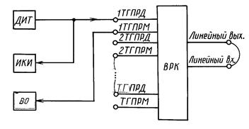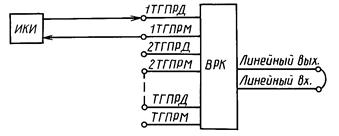 Подавая с прибора ИКИ сигналы вида «7:1» со скоростью 50 Бод, проверяют прохождение сигнала с помощью осциллографа О1, сравнивая на осциллографе О1 форму входного и выходного сигналов системы с ВРК.