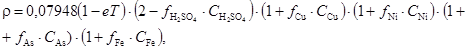 С - концентрация в электролите серной кислоты, меди, никеля, мышьяка и железа, кг/м3.