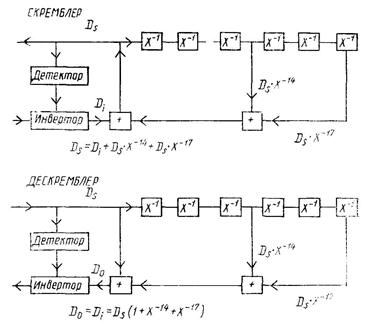 Инвертор - схема для инвертирования последующего сигнала на входе скремблера (выходе дескремблера) при обнаружении детектором комбинации из 64 двоичных «1».
