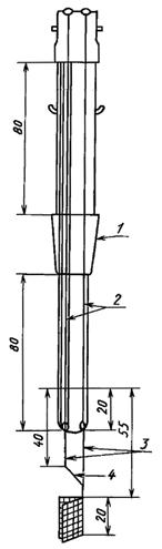 1 - шлиф 24/29; 2 - медная проволока с покрытием из олова; 3 - платиновая проволока; 4 - платина