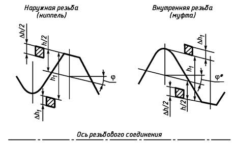 * В скобках приведены обозначения выходящих из употребления резьб по стандарту API 7 с формой профиля V - 0,065, имеющих площадки по впадинам резьбы, но обеспечивающих взаимозаменяемость с соответствующими резьбами типа NC.