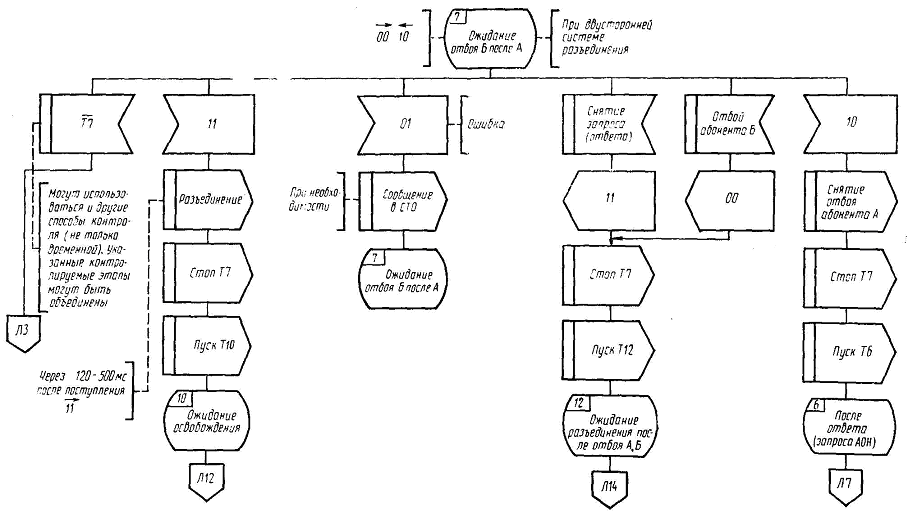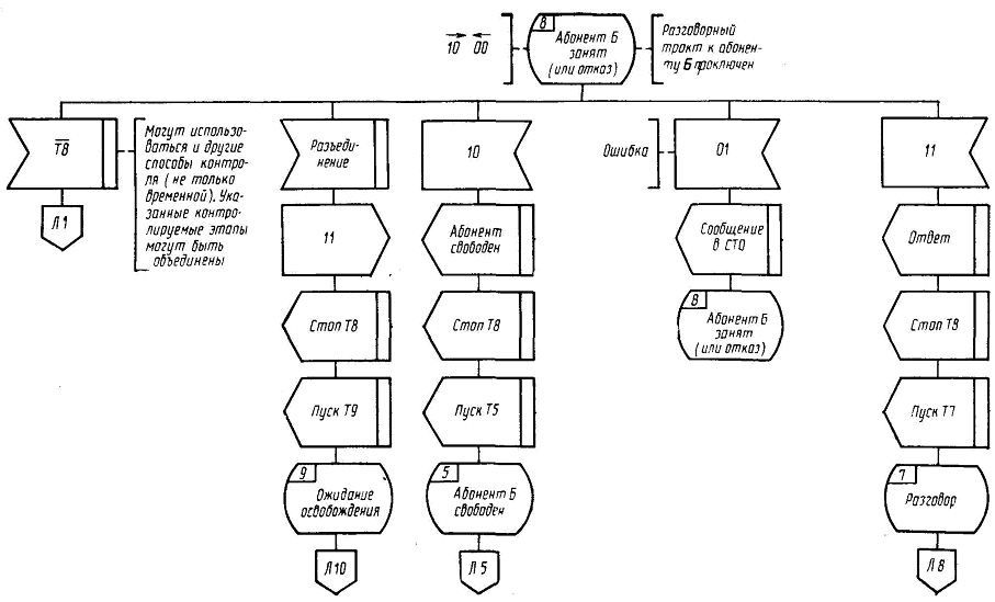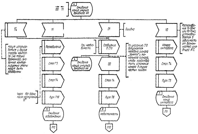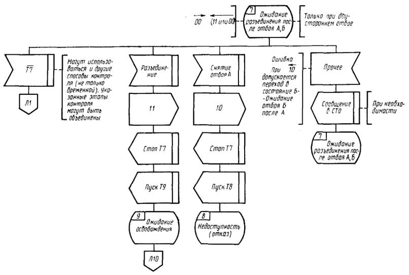 2.4.4. Время ожидания изменения каждого состояния или группы состояний определяется контрольной выдержкой времени, по истечении которой в СТО должна передаваться соответствующая информация; дальнейшая работа ЭАТС должна быть подчинена решению СТО. Допускаются и другие способы контроля (кроме временного).