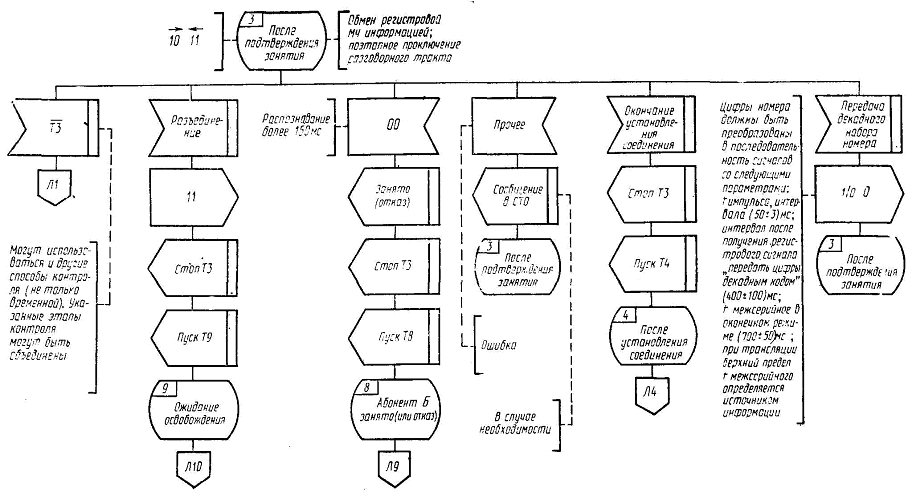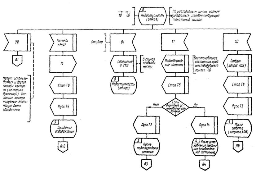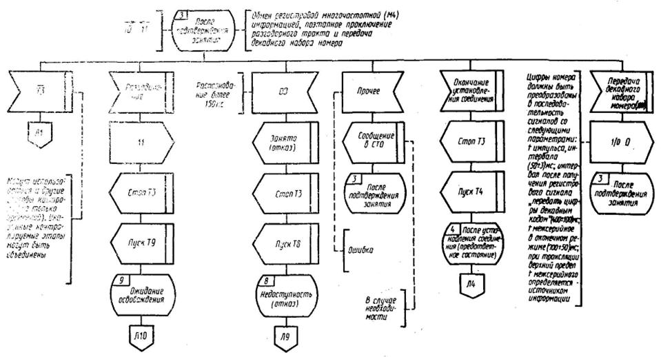 2.4.5. Все временные параметры, в том числе отдельные параметры обработки вызова, определяемые техническими требованиями к линейной сигнализации, указаны в схемах алгоритмов.