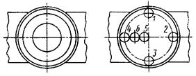 Допускается проверку параллельности обработанной поверхности проводить на шести образцах размерами: диаметр примерно 0,15 диаметра рабочей поверхности стола и высота не менее 0,1 наибольшей высоты обрабатываемого изделия. Четыре образца (1, 2, 3 и 4) устанавливают на столе (черт. 9) по его периферии на равных расстояниях один от другого, пятый образец (5) - возможно ближе к центру, шестой (6) - по диаметру стола, равному 0,5 диаметра стола.