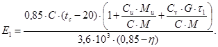 1.1. Расход электроэнергии на нагрев садки, вспомогательных устройств и воздуха разбавления или защитного газа (E1) рассчитывают по формуле