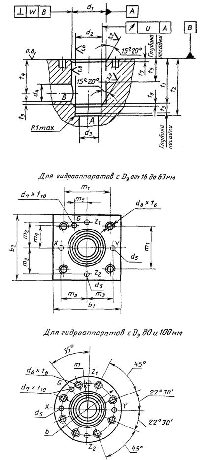 Настоящий стандарт распространяется на монтажные отверстия для вставных гидроаппаратов с условными проходами от 16 до 100 мм на номинальное давление до 32 МПа.