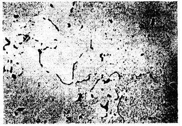 эвтектические прослойки на границах зерен или субзерен и в их стыках (черт. 1 - 5), увеличивающиеся по толщине и протяженности в зависимости от величины превышения температуры солидуса для данного сплава при нагреве;