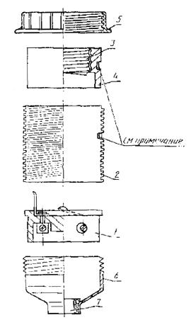 1 - «проходной» калибр; 2 - «непроходной» калибр; 3 - острая кромка; 4 - кромка с фаской; 5 - поверхность Т