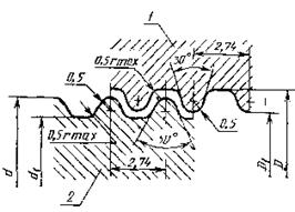 «непроходной» калибр - проверка минимального значения диаметра d наружной резьбы.