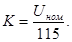 2.1.3.2. Для номинальных значений напряжений Uном, отличных от 115 В, значения повышенных переходных напряжений второго режима, указанные в табл. 2, должны быть соответственно умножены на коэффициент К, определяемый по формуле