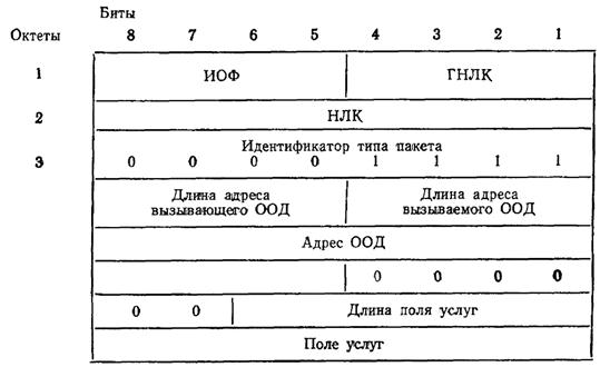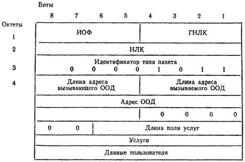 Пакет «Входящий вызов» должен использовать ЛК в состоянии р1 с наименьшим номером. Пакет «Входящий вызов» содержит адрес вызывающего ООД. Также может использоваться и поле адреса вызываемого ООД.