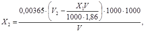 1.4.1. Массовую концентрацию соляной кислоты X, мг/дм3, вычисляют по формуле
