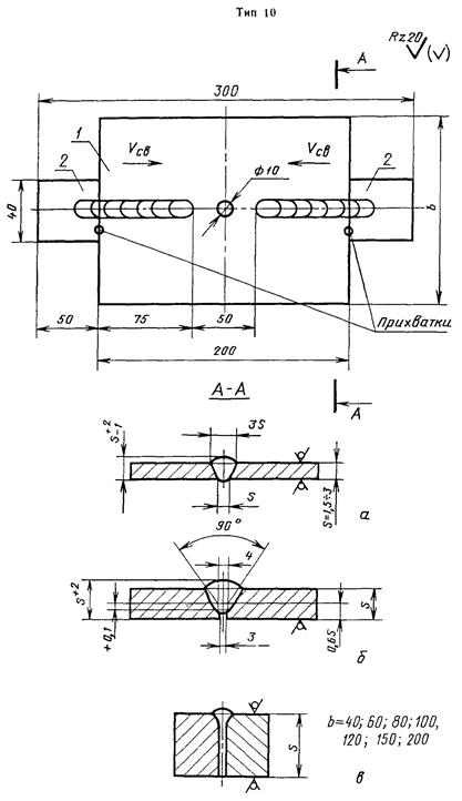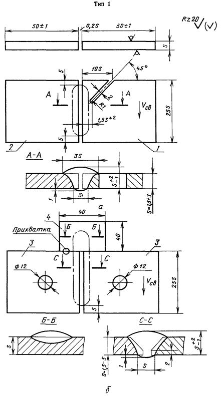 2.1.3. При определении сопротивляемости образованию трещин для электродных или присадочных сварочных материалов безотносительно к основному металлу при однопроходной сварке, применяют образцы типа 4, 5, 7, если они имеют на свариваемых кромках наплавку не менее трех слоев материалами, которые подлежат испытаниям.