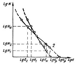 h = 2 Wp/W, где Wh значение W, при котором кривые lgN - lgW отклоняются от прямой, коэффициент