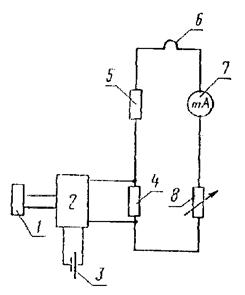1, 5 - стабилизатор напряжения П-36-11; 2 - потенциометр Р 3003; 3 - нормальный элемент Х 480; 4 - образцовая катушка сопротивления, 10 Ом; 6 - нагреватель калориметра; 7 - миллиамперметр 0 - 50 мА; 6 - магазин сопротивлений Р 4831