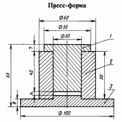 6 - 8 г подготовленной пробы помещают в фарфоровую кастрюлю и нагревают на электроплитке до температуры плавления шеллака (60 ± 5) °С. К нагретому коксу прибавляют предварительно измельченный и просеянный через сито с сеткой № 1 шеллак в количестве 1/3 - 1/2 объема кокса. Смесь по мере плавления шеллака тщательно перемешивают шпателем до образования однородной массы. Полученную массу помещают в пресс-форму (см. чертеж) и прессуют вручную с помощью плунжера в течение 10 - 15 с. Снимают матрицу с основания и плунжером выталкивают из нее готовый штабик. Для анализа из каждой пробы готовят два штабика. Допускается готовить один штабик, подвергая обработке оба торца штабика, как указано ниже, и анализируют каждый шлиф самостоятельно. Штабики хранят в пакетах из плотной бумаги по ГОСТ 2228, ГОСТ 8273 или из другой, обеспечивающей сохранность пробы.