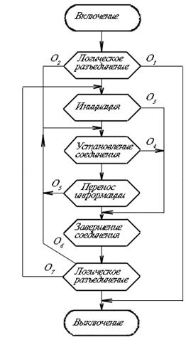 1.3. Фаза «Логическое разъединение» является одновременно исходной и конечной фазой процедур управления звеном ПД. В фазе «Логическое разъединение» станция должна находиться непосредственно после ее включения и перед ее выключением. Последнее, в частности, отражает обход O1 (см. черт. 2).