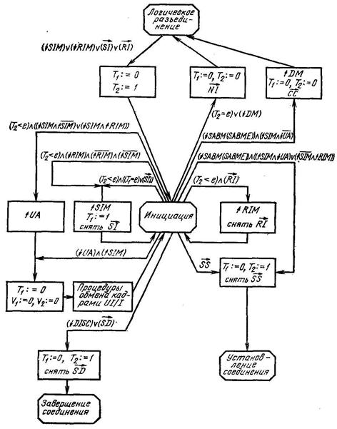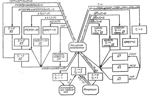 Если факт приема кадра или получение сигнала от источника - получателя информации не приводит ни к каким действиям или к переходам из одного состояния в другое, то в графическом представлении процедур это никак не отображается.