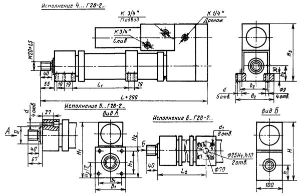 1.4. Линейные электрогидравлические шаговые приводы типа Г28-2 по виду крепления корпуса должны изготовлять в следующих исполнениях:
