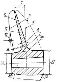 36. Расстояние от наружной хорды до нагнетательной стороны сечения лопасти |