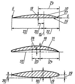 33. Расстояние от осевой линии лопасти до линии наибольших толщин |