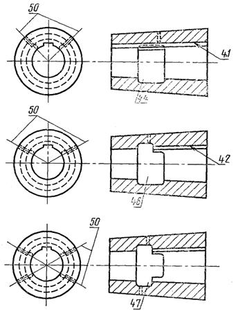 Винт гребной 1 Винт гребной левого вращения 8 Винт гребной правого вращения 7 Винт гребной регулируемого шага 6 Винт гребной сварной 4 Винт гребной со съемными лопастями 5 Винт гребной фиксированного шага 2 Винт гребной цельнолитой 3 Габарит лопасти 17 Галтель перехода лопасти к ступице 12 Диаметр кормового торца ступицы 46 Диаметр носового торца ступицы 45 Контур лопасти проектированный 20 Контур лопасти спрямленный 22 Кромка входящая 13 Кромка входящая заостренная 40 Кромка входящая скругленная 39 Кромка выходящая 4 Кромка выходящая заостренная 43 Кромка лопасти концевая 10 Линия лопасти осевая 23 Линия наибольших толщин 24 Линия профиля осевая 61 Лопасть 9 Отверстие для подвода масла и воздуха 58 Отверстие ступицы бесшпоночное конусное 47 Откидка лопасти 15 Паз шпоночный по всей длине ступицы 49 Паз шпоночный прерванный 48 Паз шпоночный укороченный 50 Плоскость винта 41 Поверхность лопасти спрямленная 21 Подъем входящей кромки 37 Подъем выходящей кромки 38 Превышение наибольшей ширины габарита лопасти за ступицу 18 Проточка для противотросового кожуха 56 Проточка под обтекатель 59 Проточка ступицы кольцевая центральная 51 Проточка ступицы сегментная 52 Проточка ступицы сегментно-кольцевая 54 Проточки ступицы сегментные две 53 Проточки ступицы сегментно-кольцевые две 55 Радиус галтели 42 Расстояние от линии наибольших толщин до входящей кромки 32 Расстояние от наружной хорды до нагнетательной стороны сечения лопасти 36 Расстояние от осевой линии лопасти до входящей кромки 30 Расстояние от осевой линии лопасти до выходящей кромки 31 Расстояние от осевой линии лопасти до линии наибольших толщин 33 Расточка под уплотнение гребного вала 57 Сечение лопасти выпукло-вогнутое 29 Сечение лопасти двояковыпуклое 27 Сечение лопасти плоско-выпуклое 28 Сечение по линии наибольших толщин 25 Смещение осевой линии лопасти 19 Сторона сечения лопасти засасывающая 35 Сторона сечения лопасти нагнетательная 34 Ступица 44 Толщина сечения наибольшая 26 Угол откидки лопасти 16 Хорда наружная 60 Часть лопасти корневая 11 |