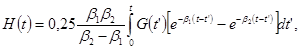 где G(t) - мощность равноценной эквивалентной дозы излучения, Зв·сут-1; β1 = 8,6·10-2 сут-1, β2 = 2,8·10-1 сут-1 - коэффициенты, характеризующие динамику развития радиационного поражения организма.