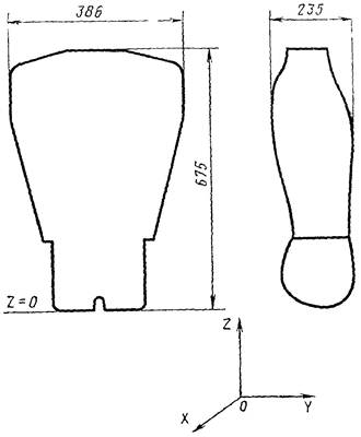 2.1.2. Форма частей антропоморфного фантома, основные размеры, а также координаты (Ф, R) для точек поверхностей сечений (Z) установлены на черт. 2 - 7 и в табл. 1 - 6: