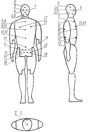 3.1. Представительные точки должны соответствовать следующим органам и системам организма: центральной нервной системе (ЦНС), кроветворной системе (КТС), желудочно-кишечному тракту (ЖКТ), хрусталику глаза (XГ) и коже (КЖ).