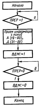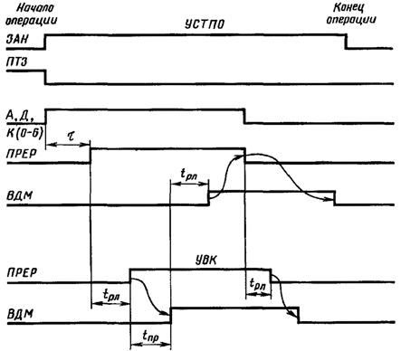 При обнаружении сигнала на линии ПРЕР УВК осуществляет прием информации с линий Д (31-00), А (19-00), К (3-6) и устанавливает сигнал на линию ВДМ;