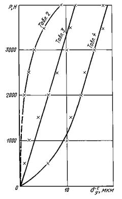 в микрометрах от нагрузки P в ньютонах.