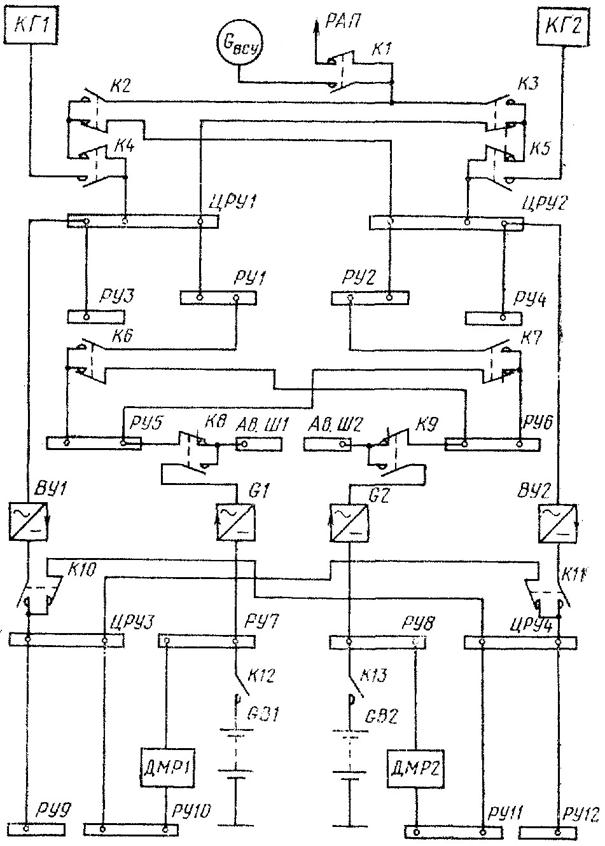 Для отдельного РУ, например РУ5, не будет и частично работы, если во вторичной системе распределения электроэнергии не предусмотрено отключение части приемников электроэнергии при отказе одного из каналов системы генерирования.