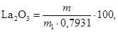Массовую долю окиси лантана в процентах вычисляют по формуле