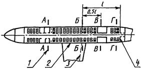 Расположение точек измерений в салонах дальних, средних и ближних магистральных самолетов с реактивными двигателями