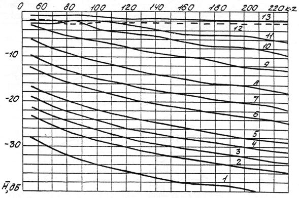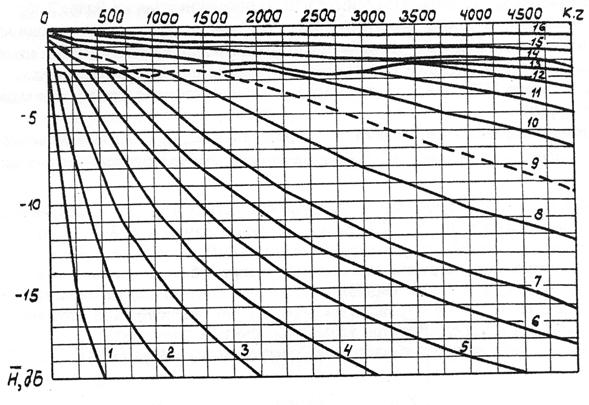 , дБ/мм (z - высота Н или радиус R нагрузки, мм).