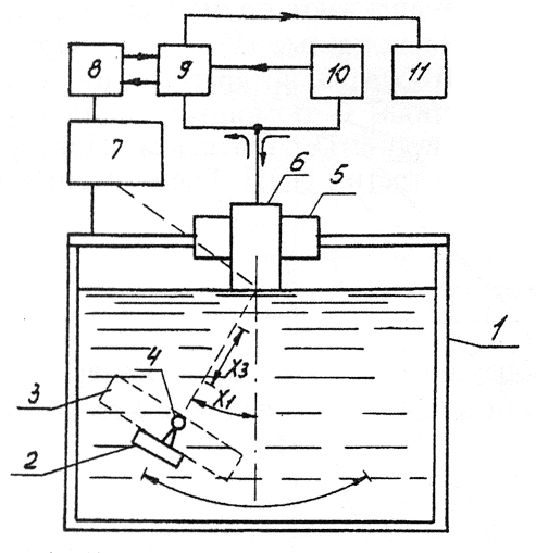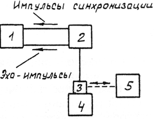 1 - электронный блок УПНК; 2 - проверяемый ПЭП; 3 - акустическая нагрузка или стандартный образец; 4 - осциллограф