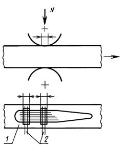 3.2.2. Включают разрывную машину и осуществляют протягивание роликовых контробразцов относительно образца при монотонно возрастающем усилии прижатия.