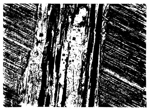 3.2.3. Осматривают обе поверхности трения образца и выделяют на каждой из них три пары противолежащих участков поверхности, ограничиваемых контуром, соответствующим контуру контакта образца с контробразцом и охватывающим царапины, возникшие вследствие заедания трущихся поверхностей размеры которых в пределах их участков обладают наибольшим постоянством.