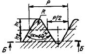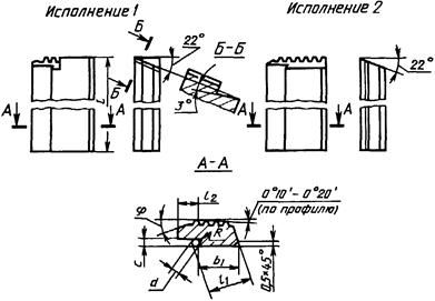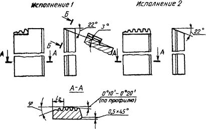 1. Для нарезания резьбы на деталях с ограниченным сбегом угол j = 25°, для нарезания резьбы на деталях без ограниченного сбега j = 11°.
