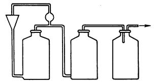 Обмывают стенки колбы водой, перемешивают раствор вращательными движениями и охлаждают холодной водой. К охлажденному до комнатной температуры раствору добавляют 5 см3 раствора хлорной ртути. При этом должен образоваться небольшой белый осадок хлористой ртути (I). Если осадок не образуется или его образуется много и он окрашен в темный цвет металлической ртутью, анализ следует повторить.