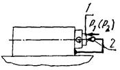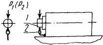 Наконечник измерительного прибора 2, закрепленного на корпусе бабки, касается боковой поверхности крепежного фланца шпинделя 1 и направлен радиально к ее оси. С противоположной стороны к фланцу шпинделя прикладывают радиальную нагрузку, равную Р1. Показание прибора фиксируют и нагрузку увеличивают до значения Р2.