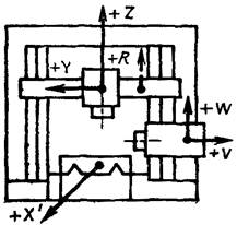 по осям X, X', Y, Y', Z, Z', V, W, W', мм |