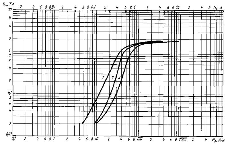 Кривые намагничивания стали марки 3425 (Э360АА)