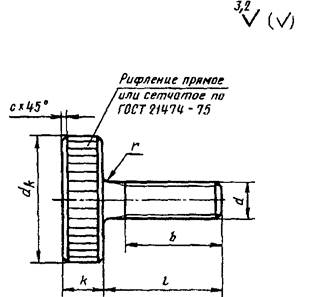 ВИНТЫ С НАКАТАННОЙ НИЗКОЙ Конструкция и размеры Low knurled-head screws. Construction and dimensions |