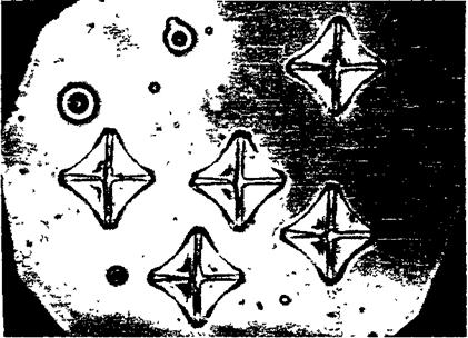 Микротвердомер снабжают поляризационными светофильтрами Пф-32, одним из которых (поляризатор) устанавливают в гнездо осветителя микротвердомера, а второй (анализатор) - на окуляр окулярного микрометра; выбор участка для определения микротвердости производят в поляризованном свете;
