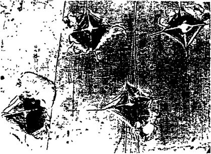 2.3.3. На поверхность аншлиф-куска ватным тампоном наносят узкую полоску раствора парафина в бензине перпендикулярно слоистости. К измерениям приступают после 20 - 30-минутной выдержки аншлифа на воздухе для испарения растворителя. Годными для определения микротвердости принимают участки аншлифа, на которых парафин образует сплошную пленку со слабым коричневым оттенком. Участки с яркой интерференционной окраской из-за большой толщины пленки для замеров непригодны. После проведения замеров или при необходимости улучшить пленку индикатор удаляют фланелью или сухим тампоном. Таким же образом удаляют индикатор с поверхности алмазной пирамиды после каждого нагружения, не снимая ее с микротвердомера.