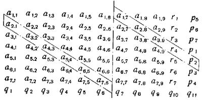 3. Ни один из проверочных битов (q1, q2, ..., qn, qn+l, qn+2) не следует включать в отсчет совокупности строчных и диагональных проверок.
