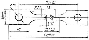 2.1. Для испытаний следует применять плоские образцы с начальной расчетной длиной l0 = 25 мм.