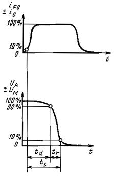 td - время задержки по управляющему электроду; tг - время нарастания по управляющему электроду; tt - время включения по управляющему электроду.